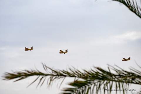 z Hernández logró la instantánea del paso de tres anfibios del Grupo 43 de las FFAA (antiguo 404 Escuadrón). Vistos al fondo de las dos torres de la Basílica de san Juan. Que cumple 50 años como basílica menor. Nos trae el recuerdo del toque de rebato de las campanas el 14 de diciembre de 1973, en esa madrugada ardían las naves del Sindicato Agrícola del Sur de la calle Doramas.