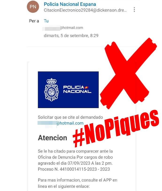 - El dominio del remitente no guarda ninguna relación con el de Policía Nacional