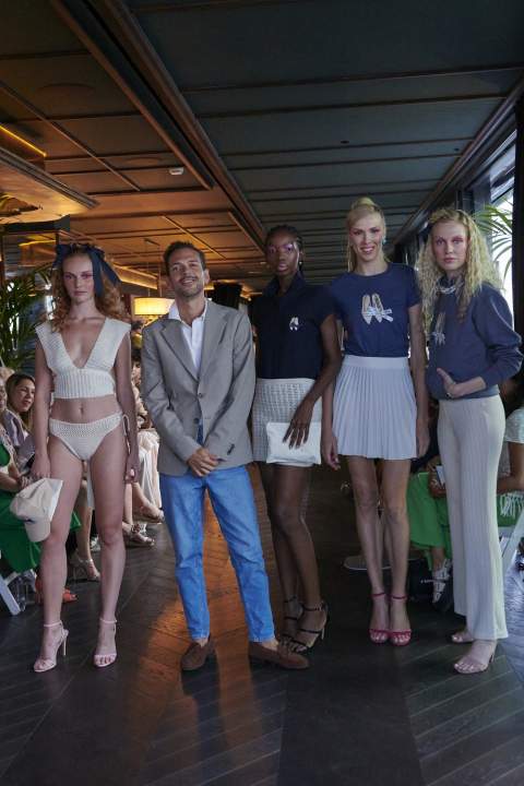 En cuanto al desfile, Pedro Palmas desveló los secretos de Acqua, una colección inspirada en el agua de nuestro planeta, en su cuidado y en los mares, compuesta por diseños que transmiten la sensación de frescura y libertad de los veranos en las playas y piscinas. Acqua se caracteriza también por sus líneas clásicas renovadas y la introducción de bikinis y bañadores, engarzados en piezas de metal, con el anagrama de la marca en varias versiones.