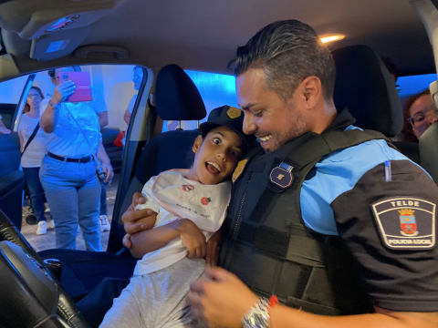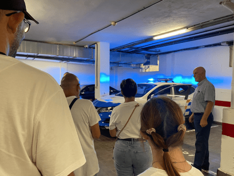Más tarde se trasladaron a las dependencias de Servicios Sociales, donde les esperaba la concejala responsable, Adela Álvarez, para luego desplazarse hasta las dependencias de la Policía Local de Telde. Una vez allí, su jefe, Félix Ramos, y varios agentes del cuerpo, les enseñaron el recinto. Así, pudieron subirse a los vehículos oficiales, probar sus sirenas, hablar por la megafonía y sentirse por momentos auténticos agentes de seguridad.