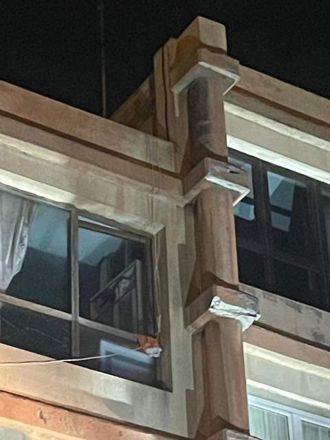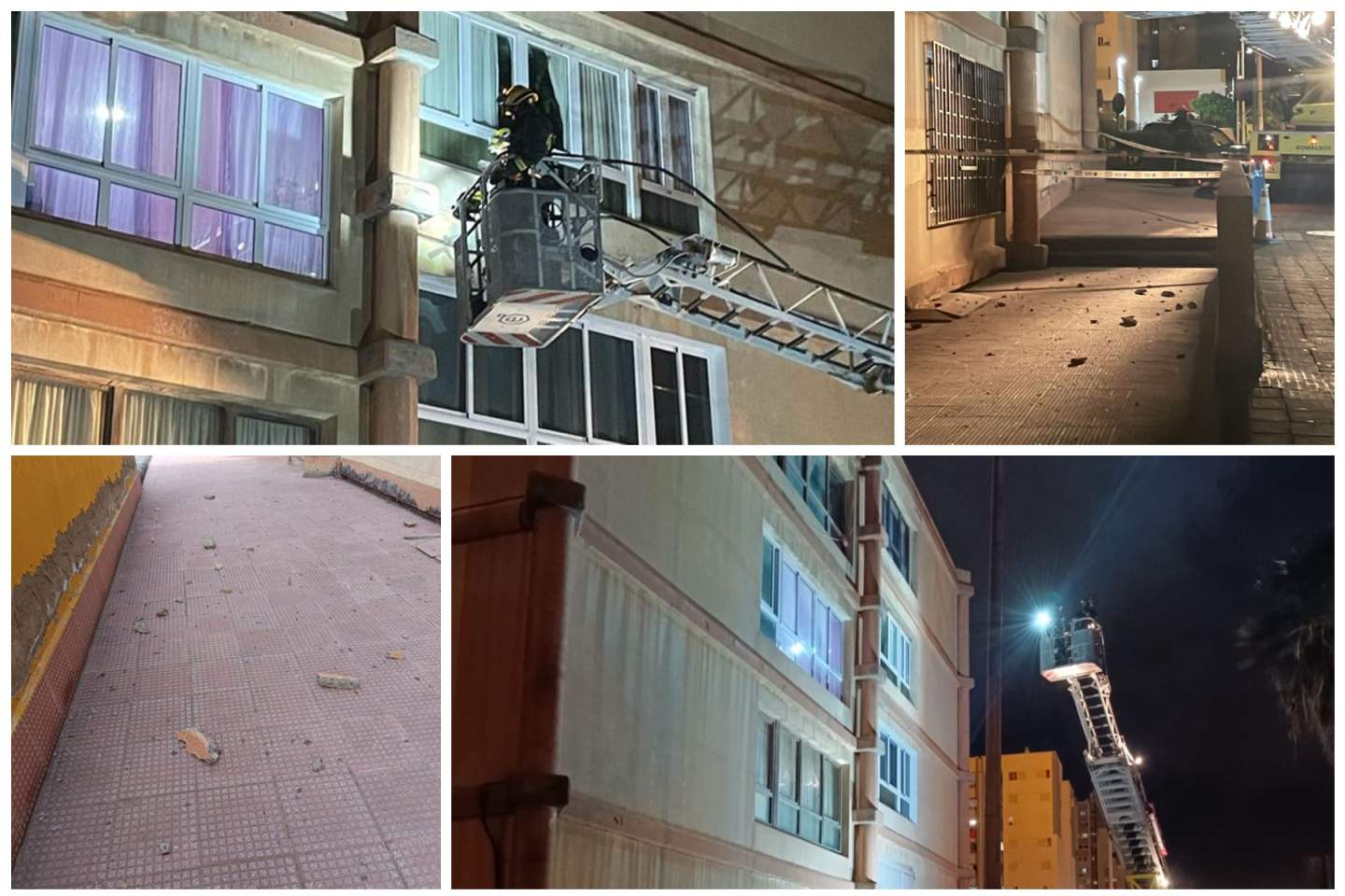 Bomberos del Consorcio de Emergencias de Gran Canaria, adscritos al parque zonal de Telde, tuvieron que intervenir anoche en el Valle de Jinámar ante la caída de cascotes desde el frontis del número 24 de la calle de Fernando Sagaseta.