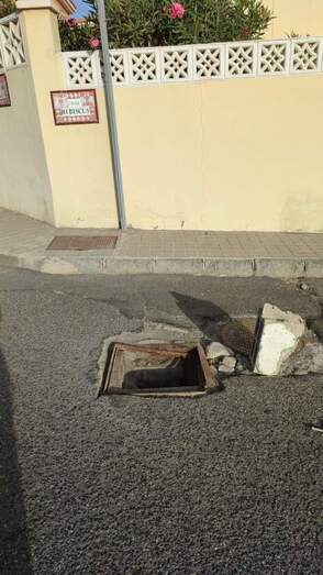 Una peligrosa arqueta sin tapa ubicada en la calle Hibiscus, en La Garita, a punto ha estado de provocar un accidente de tráfico cuando un motorista que circulaba por la zona no pudo evitar pasar por encima de ella. La víctima, que afortunadamente salió ilesa, colocó un bloque justo delante para advertir del peligro.