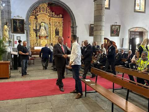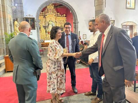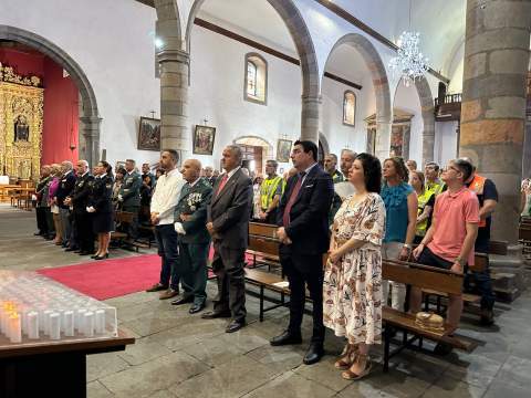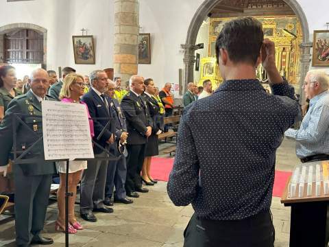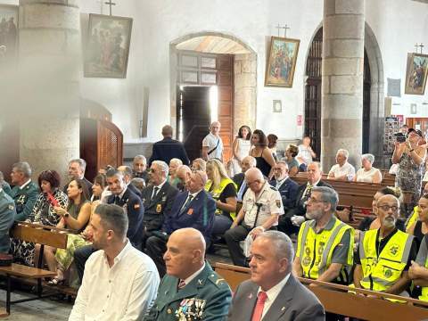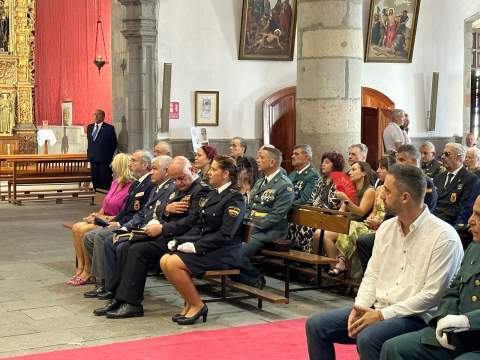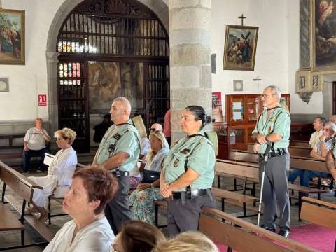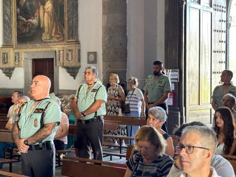 La Basílica de Telde acogió al mediodía de este jueves festivo, día de la Virgen del Pilar y de la Fiesta Nacional, una misa en honor de la patrona de la Guardia Civil.