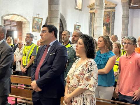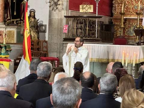 La eucaristía estuvo oficiada por el nuevo párroco de San Juan, Antonio Juan González y se realizó una ofrenda floral ante una talla de la Virgen del Pilar.
