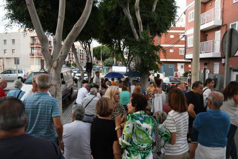 Los vecinos de Salinetas han mostrado su sorpresa por el operativo de limpieza desplegado desde por la mañana en la rambla, donde hasta minutos antes del inicio del acto aún había operarios realizando labores para dejar impoluta esta zona.