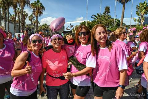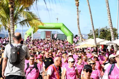 Cientos de personas abarrotaron este domingo por la mañana la avenida de la playa capitalina de Las Canteras en la VIII Caminata Gran Canaria Grand Pink Run 2023 contra el cáncer de mama organizada por la Asociación Española Contra el Cáncer con el objetivo de sensibilizar sobre este tumor, el más frecuente en la mujer en todo el mundo y que tiene especial incidencia en mujeres comprendidas entre los 45 y 65 años, cuyo Día Mundial se celebró el 19 de octubre, bajo el lema #ElRosaEsMásQueUnColor.