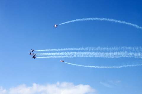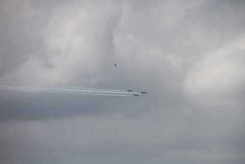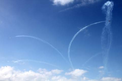 El piloto de la patrulla Águila adelantó a los medios que este domingo también se pudo ver «una maniobra muy bonita, la más conocida, con forma de corazón», y «si las nubes lo permiten también el 'Solo', que es la individual y la maniobra más exigente que puede hacer el avión», además de «algunas sorpresas».