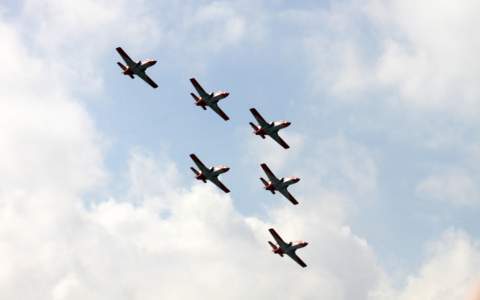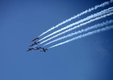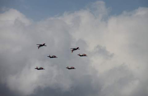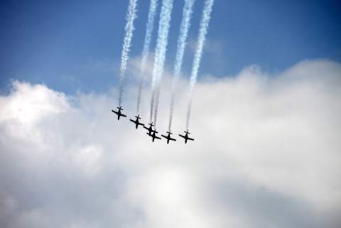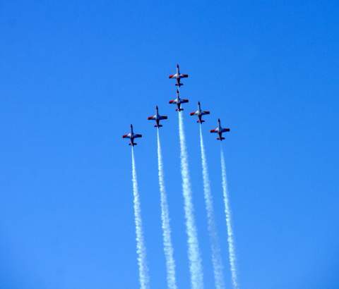 En la exhibición «ahora mismo hay seis pilotos que están habilitados» con aviones C-101 de fabricación española y pintados con los colores de la bandera.
