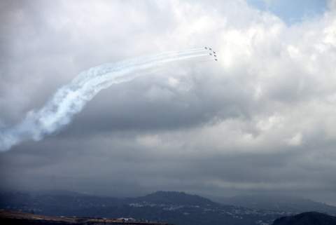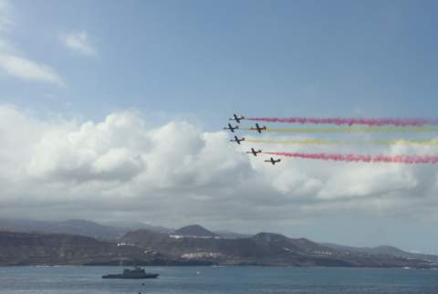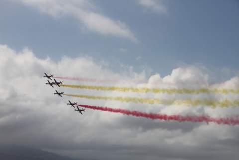 «El domingo van a poder disfrutar de una exhibición que tiene dos tablas, en función de si hay o no hay nubes» para «unos 40 minutos en donde habrá una parte de la exhibición conjunta con todos los aviones haciendo acrobacias juntos y una parte en donde nos separamos y nos dividimos en tres grupos para hacer maniobras individuales», ha detallado.