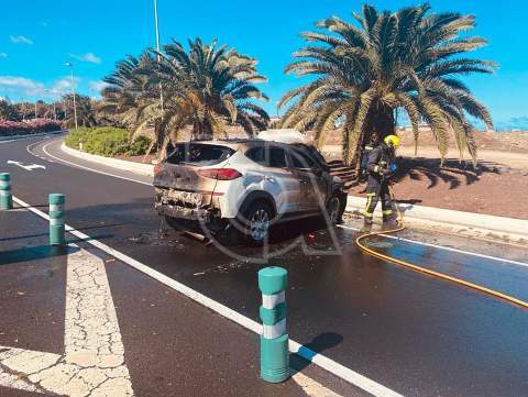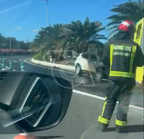 Un vehículo turismo quedó prácticamente calcinado al incendiarse tras colisionar con otro cuando circulaba por el desvío de salida hacia la autovía GC-1, en dirección hacia la capital grancanaria,  desde la Avenida del Cabildo (GC-10). El accidente ocurrió minutos antes de las 14.00 horas de este miércoles festivo, según informaron testigos presenciales.