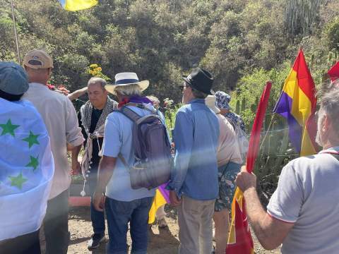 Como cada 1 de noviembre, familiares y activistas se reunieron este miércoles para honrar con una ofrenda floral a las víctimas arrojadas a la Sima de Jinámar durante la dictadura franquista.