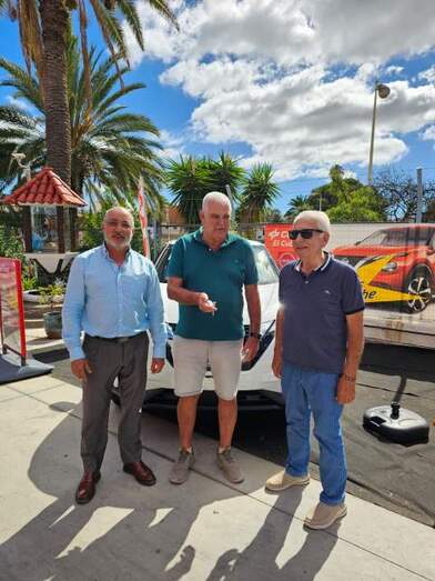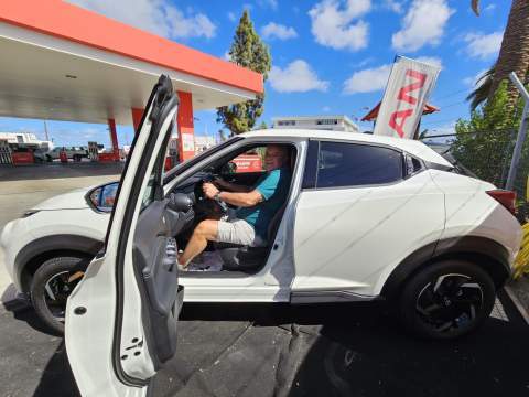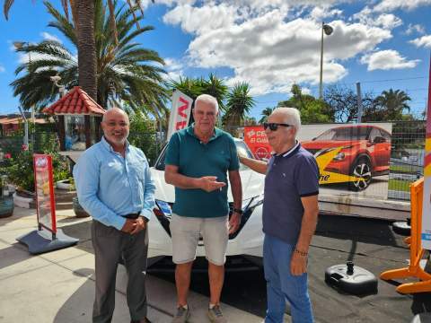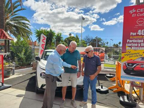 El acto de entrega de la llave y de toda la documentación que le hace acreditativo del vehículo tuvo lugar en las instalaciones de San Juan junto al propietario de la gasolinera, Juan Diego Falcón, y el representante de Nissan Telde.