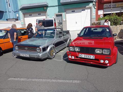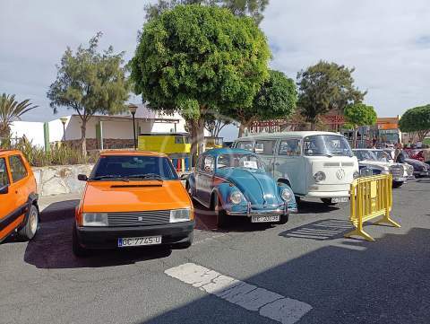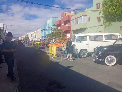 El barrio teldense de La Majadilla se ha llenado este sábado de coches clásicos de distintas épocas y estilo en una exposición organizada por la Asociación Cultura Deportiva Majatrail en la plaza pública y su entorno.