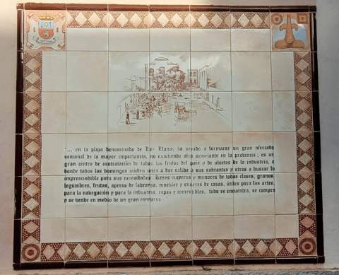 ….. en la plaza denominada de Los Llanos ha venido a formarse un gran mercado semanal de la mayor importancia, no existiendo otro semejante en la provincia: es un gran centro de contratación de todos los frutos del país y de objetos de la industria, a donde todos los domingos unos a dar salida a sus sobrantes y otros a buscar lo imprescindible para sus necesidades. Reses mayores y menores de todas clases, granos, legumbres, frutas, aperos de labranza, muebles y enseres de casas, útiles para las artes, para la navegación y para la industria, ropas y comestibles, todo se encuentra, se compra y se vende en medio de un gran concurso…