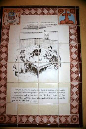 Un mural de reconocimiento en la fachada principal del café expresa: El Café Buenaventura, ha sido durante más de seis décadas el lugar preferido como punto de encuentro y tertulias culturales y económicas del sector mercantil de Los Llanos de San Gregorio. Este Café fue decorado a principios de los cincuenta por el artista Felo Monzón.