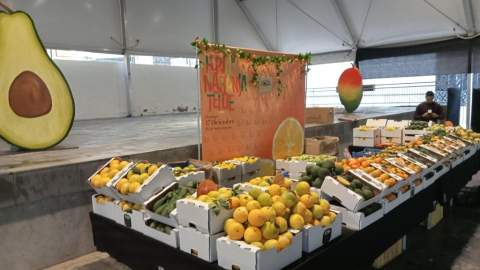 Una una quincena de agricultores y agricultoras de Mogán –algunos asociados en un solo stand– ocuparon los 1.160 metros cuadrados de la carpa permanente de Arguineguín con las mencionadas variedades de aguacate, cuyo cultivo se acerca a las 40 hectáreas en el municipio. Ni las olas de calor sufridas en los últimos meses, que han propiciado una merma en el volumen habitual de producción, han impedido su participación con el 'oro verde' y otros productos de la tierra que han llenado de color sus expositores. Entre estos mangos y naranjas, de las que respectivamente se han puesto a la venta más de 1.000 y 1.500 kilos. También mandarinas, limas, limones, granadas, papayas, plátanos, guayabos, calabaza y hasta árboles de aguacate y mango.