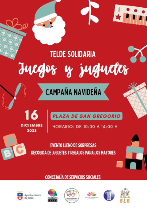 Telde ha aunado fuerzas este año para ayudar a los Reyes Magos de Oriente con el fin de que ningún menor ni persona mayor de la ciudad se quede sin regalos esta Navidad, tal y como asegura la edil de Servicios Sociales, Adela Álvarez. De esta manera, la Concejalía, después de "meses de trabajo" y con la participación de la Zona Comercial Abierta (ZCA), empresas privadas, ONG, Casa de Galicia y voluntarios, ha puesto en marcha la campaña solidaria Juegos y juguetes, cuyo acto principal tendrá lugar el próximo sábado 16 de diciembre, de 10.00 a 14.00 horas en la plaza de San Gregorio.