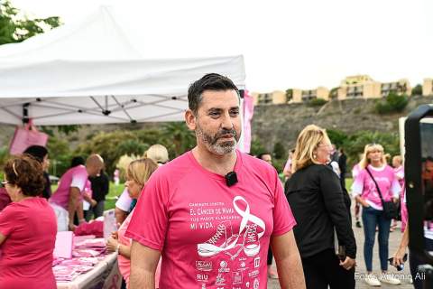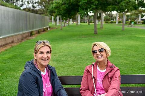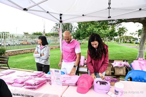 En los previos a la salida de la caminata, los asistentes pudieron adquirir camisetas rosas de apoyo a la Asociación de Cáncer de Mama