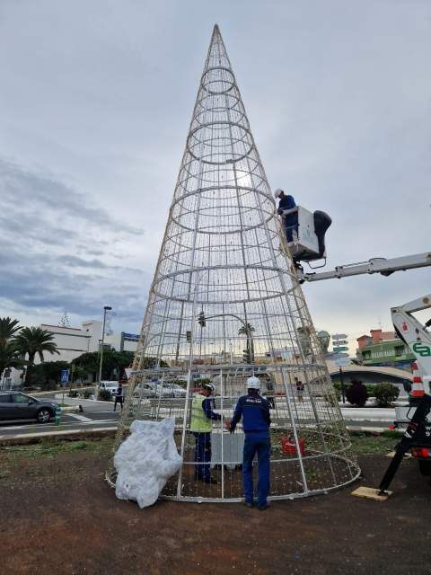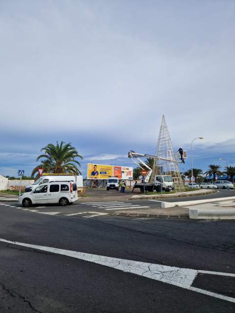 Después del encendido navideño oficial y la apertura de El Jardín de La Navidad, en el Parque Arnao, como punto de encuentro de lugareños y visitantes, la Concejalía de Alumbrado Público de Telde, liderada por Juan Francisco Artiles, de la mano de la empresa concesionario del servicio, Elecnor, continúa decorando de Navidad y dando luz a las calles de la ciudad. Así, los trabajadores encargados han instalado un nuevo árbol de 12 metros de altura en la entrada del municipio.