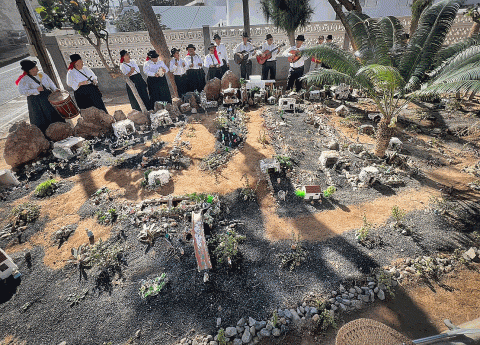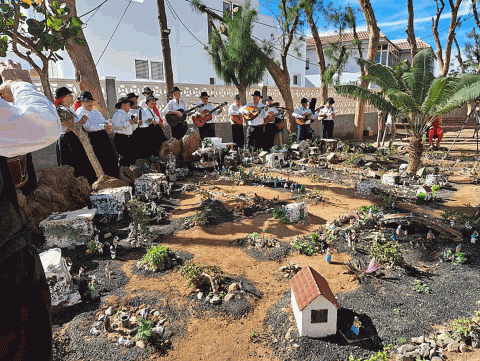 La apertura del nacimiento estuvo animada por la parranda La Sal, que interpretó un repertorio de canciones navideñas y contó con la presencia del vicealcalde Sergio Ramos y de la concejala de Playas, María González Calderín, entre otras personas.