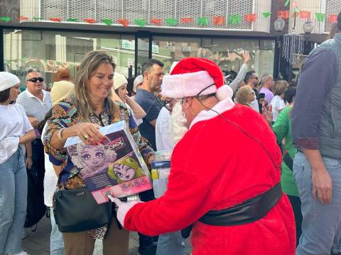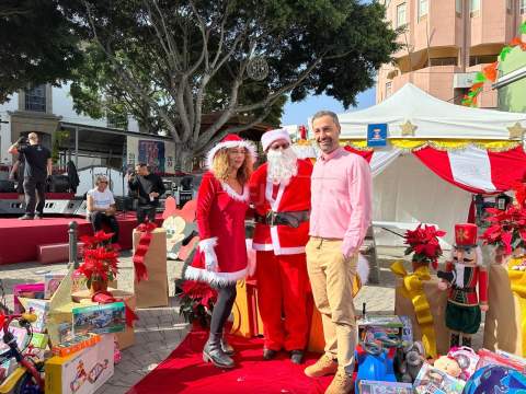 El entorno de la plaza de Los Llanos, en zona comercial abierta de Telde, acogió este sábado el acto principal de la campaña de recogida de juguetes organizada por el área municipal de Servicios Sociales que dirige la concejala Adela Álvarez para su reparto entre las familias más desfavorecidas de la ciudad.