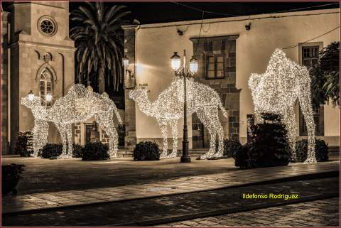 En Telde, los llamativos y grandiosos elementos luminiscentes de temática propia de esta época de año, colocados por el área municipal de Alumbrado Público del Ayuntamiento en la plaza del conjunto histórico (camellos y árbol de gran tamaño), plaza de Los Llanos (árbol y oso blanco), así como en el parque urbano de Arnao y en otros puntos de la ciudad central han convertido a la cuarta urbe de Canarias en destino navideño para cientos y cientos de familia de la ciudad y de otros municipios.