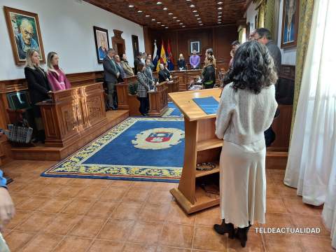 La periodista teldense Nayra Collado ha sido la responsable de la lectura del manifiesto institucional por las víctimas de la violencia de género y que ha tenido lugar este miércoles durante la celebración del Pleno Ordinario del mes de diciembre en las Casas Consistoriales.