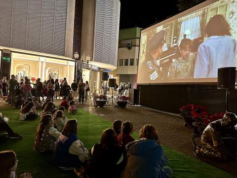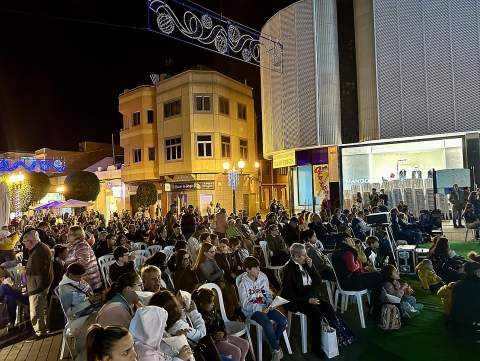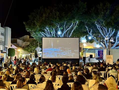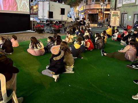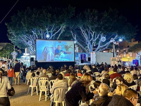 La plaza de Los Llanos acogió en la tarde de este jueves, con éxito de público, la primera sesión de Cine de Navidad, una iniciativa del Ayuntamiento de Telde que se repetirá este viernes y sábado para disfrutar de películas navideñas al aire libre.