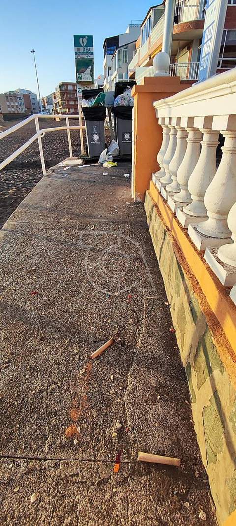 En el primer día del nuevo año, los residentes de Salinetas han expresado su preocupación y descontento por el estado de suciedad que ha amanecido la playa y la avenida costera de esta zona de Telde.