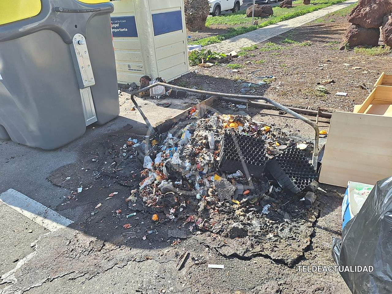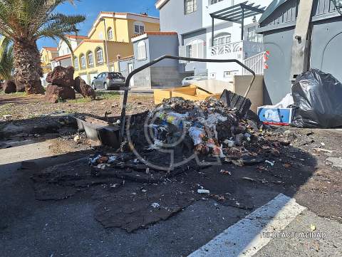 Un contenedor gris destinado a la recogida de residuos orgánicos ardió esta madrugada en la costa de Telde, concretamente en la urbanización residencial de Hoya Pozuelo.