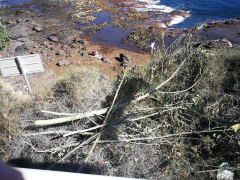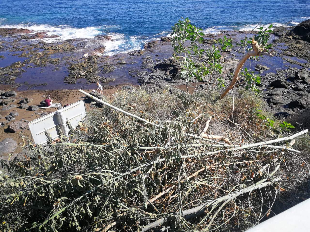 Vecinos de la costa de Telde lamentan el incivismo ciudadano tras aparecer restos de poda de grandes ramas junto al paseo costero, a la altura del Mirador de Clavellinas que lleva por nombre Juan Francisco Franco Betancor.