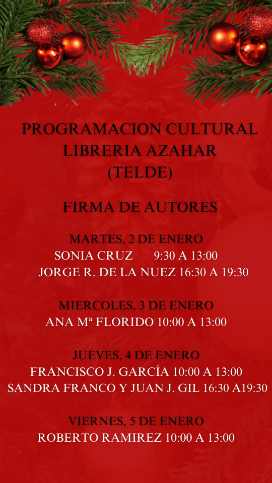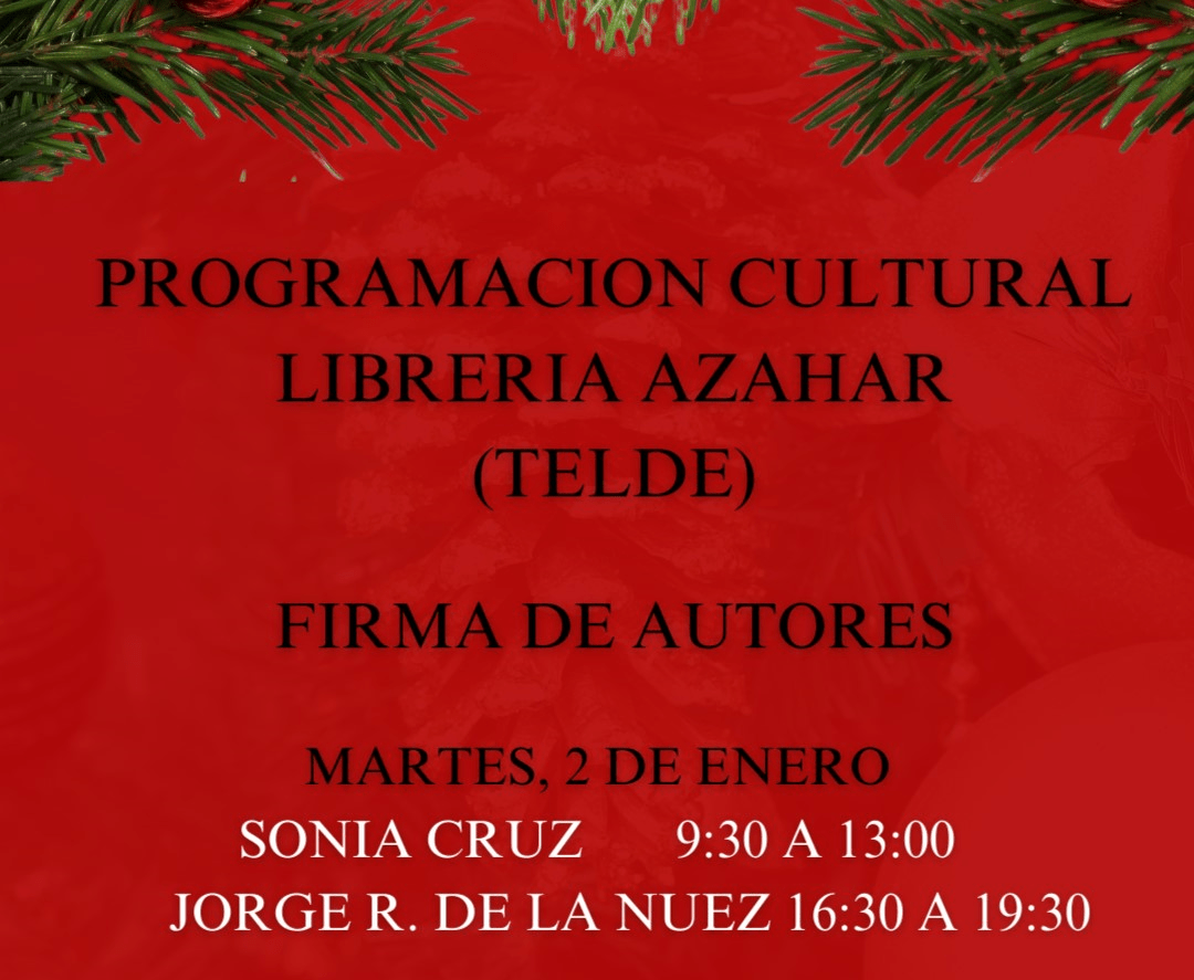 La programación cultural arranca este martes con la rubrica de ejemplares de Sonia Cruz, entre las 9.30 y las 13.00 horas, mientras que por la tarde le tocará el turno a Jorge R. de la Nuez, que estará en el local de 16.30 a 19.30 horas,