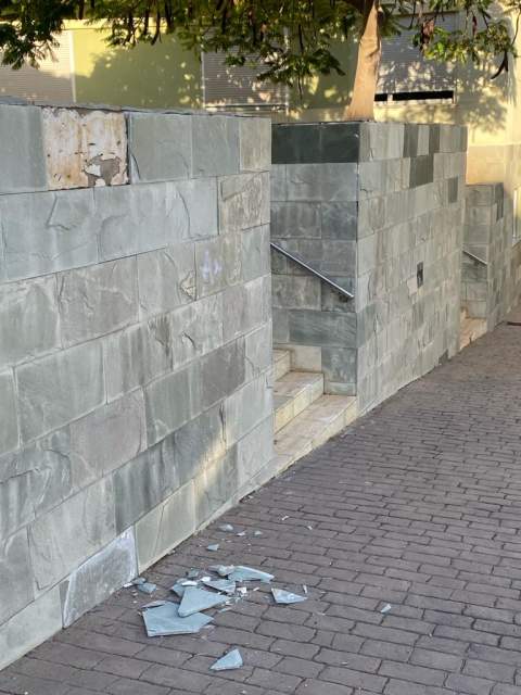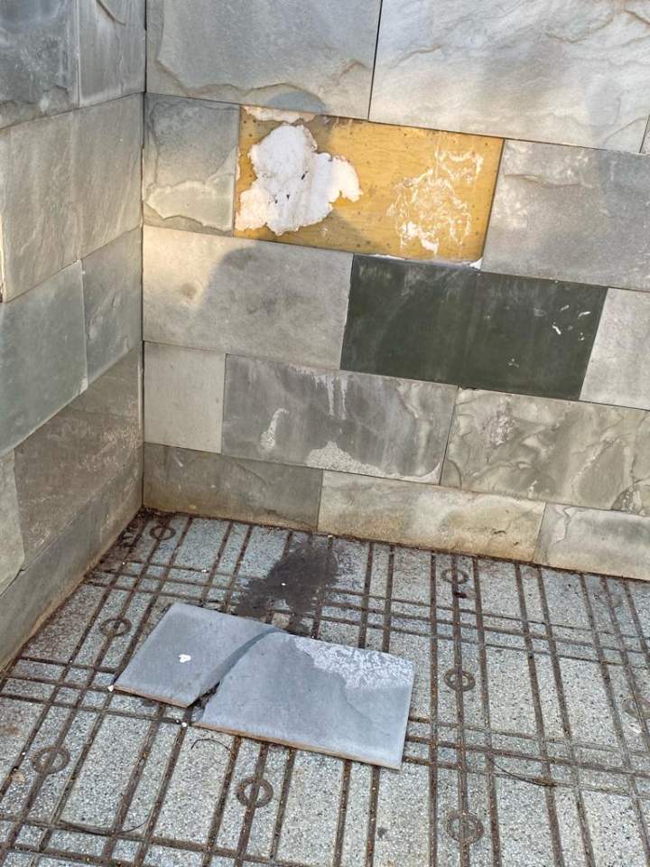 "Es sumamente preocupante ver cómo estas lozas con elementos cortantes continúan desprendiéndose del parque. Es un auténtico peligro para nuestros niños que acuden aquí a jugar", expresó uno de los vecinos.
