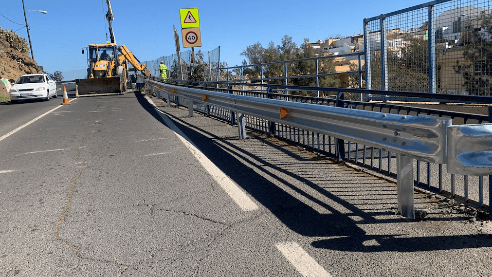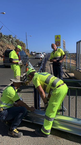 Tras comprometerse el consejero insular a esta primera actuación, un equipo de operarios del servicio de Conservación de Carreteras del Cabildo comenzó esta misma semana a instalar un nuevo vallado de 50 metros de largo conformado por barreras tipo bionda junto al antiguo vallado de hierro que separa la carretera del sendero peatonal. Estas barreras tipo bionda son las que se usan en los márgenes de las principales carreteras, son de acero reforzado y capaces de aguantar el impacto de un vehículo en caso de accidente, cosa que no hacía la antigua valla de hierro. Los operarios del Cabildo emplearán varias jornadas en instalar las nuevas barreras con el objetivo de dejarlas terminadas la próxima semana y que estén operativas con el regreso del alumnado tras las vacaciones navideñas.