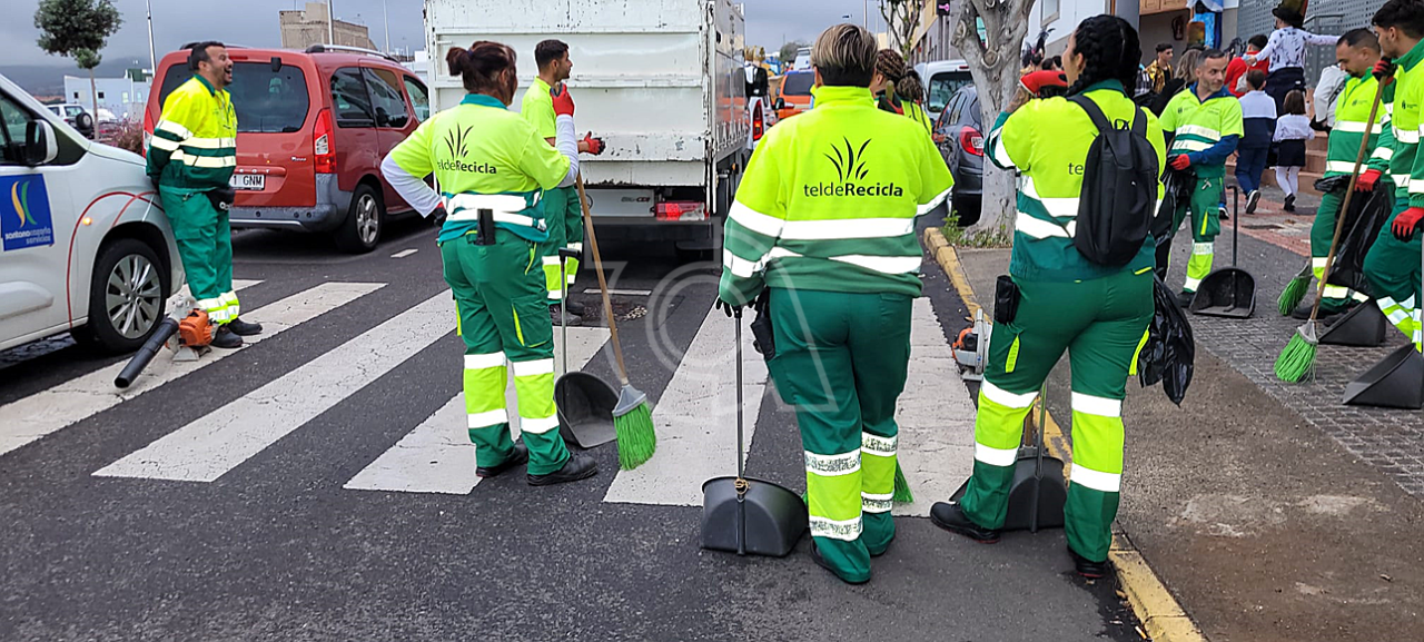 La Concejalía de Limpieza Viaria y Recogida de Residuos del Ayuntamiento de Telde, que dirige María Calderín, organizó un dispositivo de limpieza extraordinario que se activó durante la celebración de la Cabalgata de Reyes. En total, una plantilla compuesta por diez personas se encargaron de devolver la normalidad a las calles y espacios públicos por los que pasó este tradicional pasacalle.