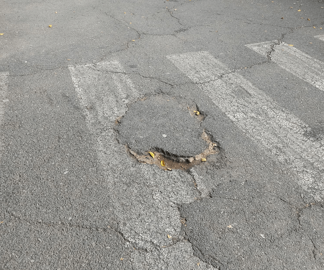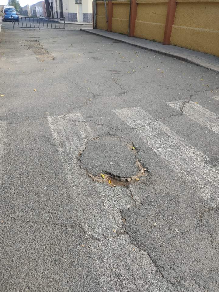 “Muchísimos vecinos usamos este pasillito para dejar a nuestros peques en el cole. ¡Y miren el estado de la vía! Niños pequeños y grandes, adultos y abuelitos que andamos por ahí y corremos el riesgo de una mala caída. El asfalto está fatal y unos agujeros tremendos. Los niños corretean por la zona en horario de entrada y salida y no es la primera vez que tropiezan”, explican.