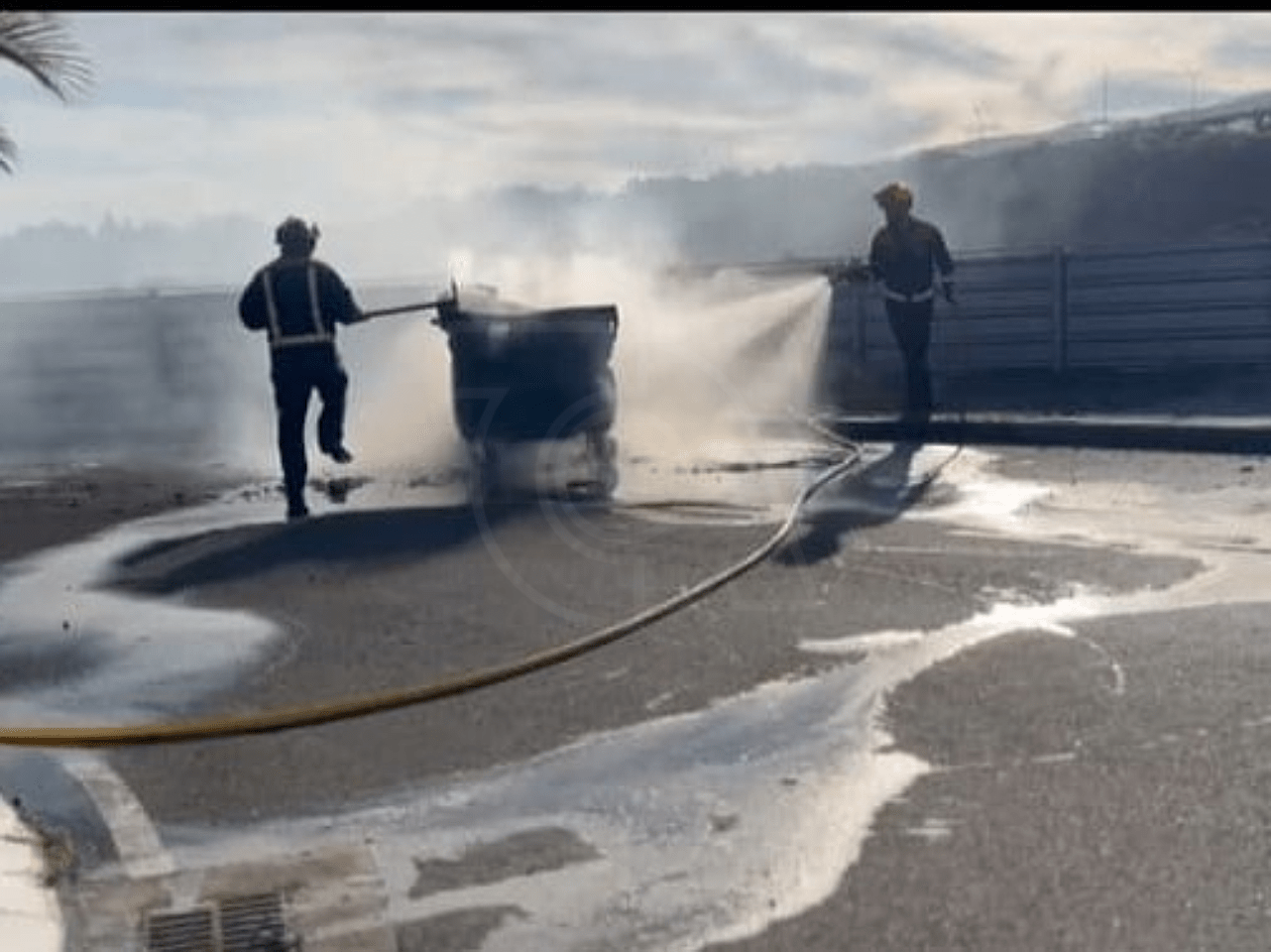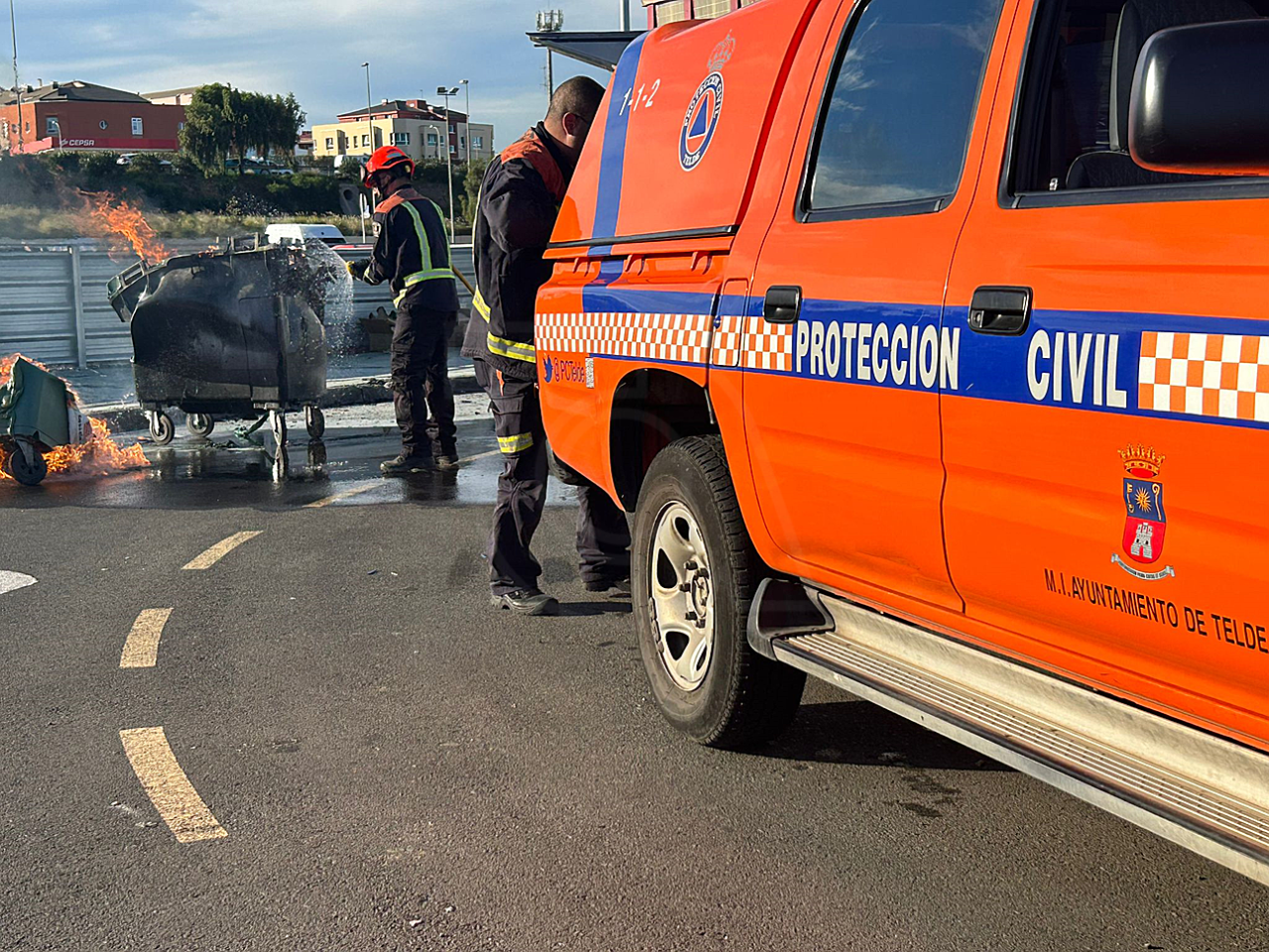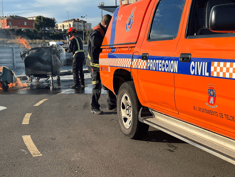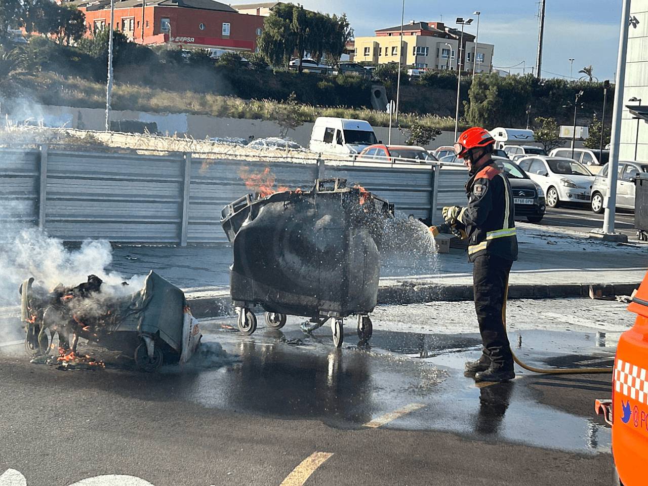 Un incendio afectó esta tarde a dos contenedores para la recogida de resiudos orgánicos en el Parque Comercial de La Mareta, en una zona cercana al establecimiento de Burguer King. La emergencia fue controlada gracias a la pronta acción de la Policía Local y de voluntarios de la Agrupación de Protección Civil, quienes utilizaron 600 litros de agua para extinguir las llamas en los depósitos, que quedaron calcinados.