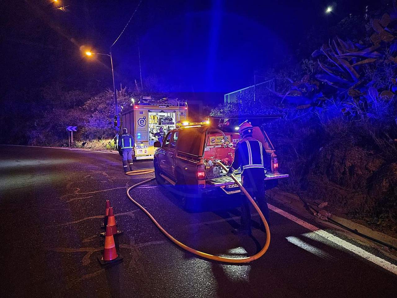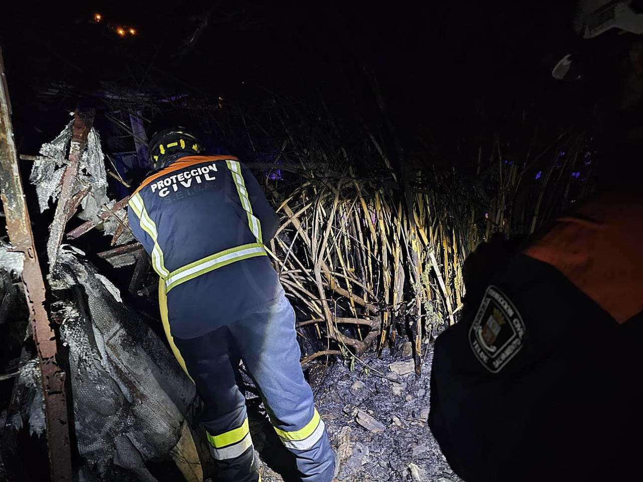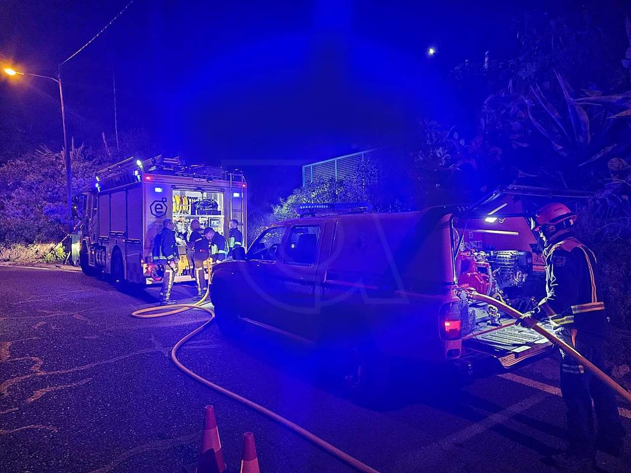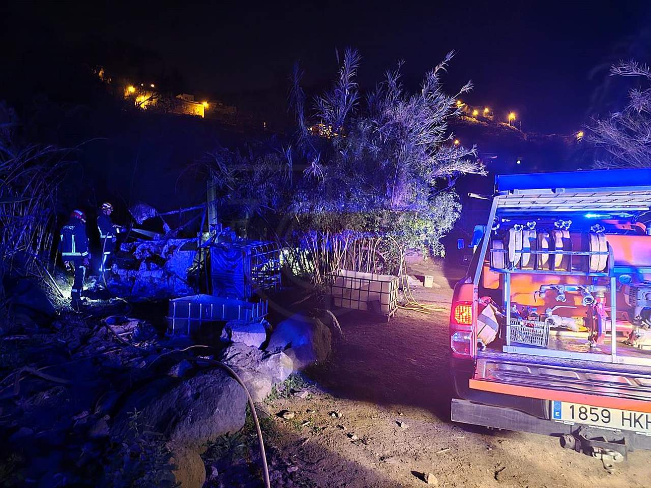 Anoche, bomberos del parque zonal de La Garita y voluntarios de las agrupaciones de Protección Civil de Telde y Valsequillo se unieron en las labores de extinción de un incendio que afectó a un alpendre en el Barranco de San Roque.