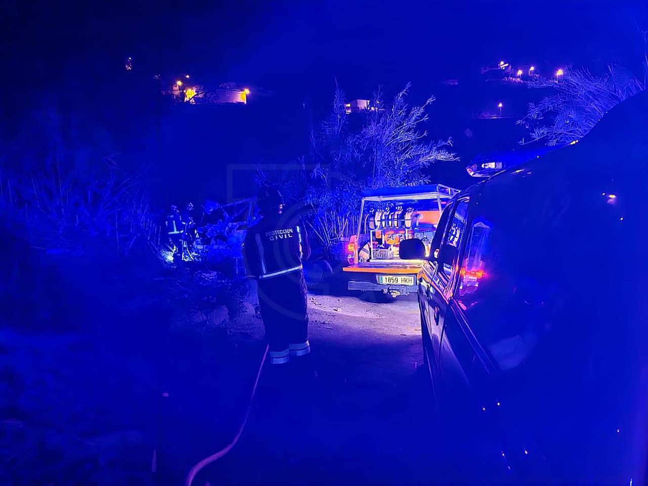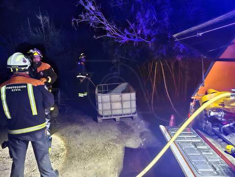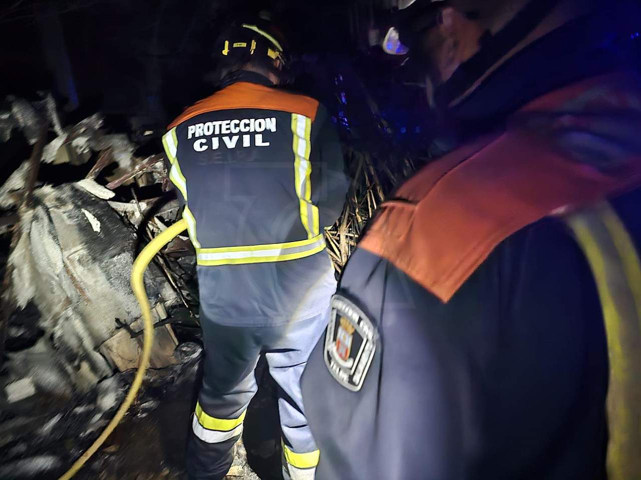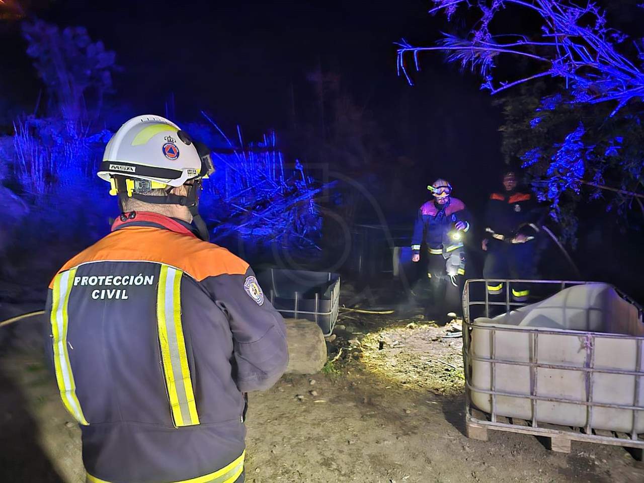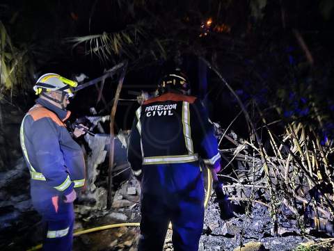 Anoche, bomberos del parque zonal de La Garita y voluntarios de las agrupaciones de Protección Civil de Telde y Valsequillo se unieron en las labores de extinción de un incendio que afectó a un alpendre en el Barranco de San Roque.