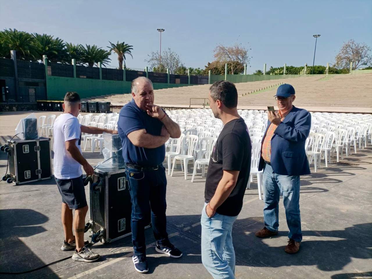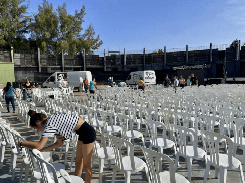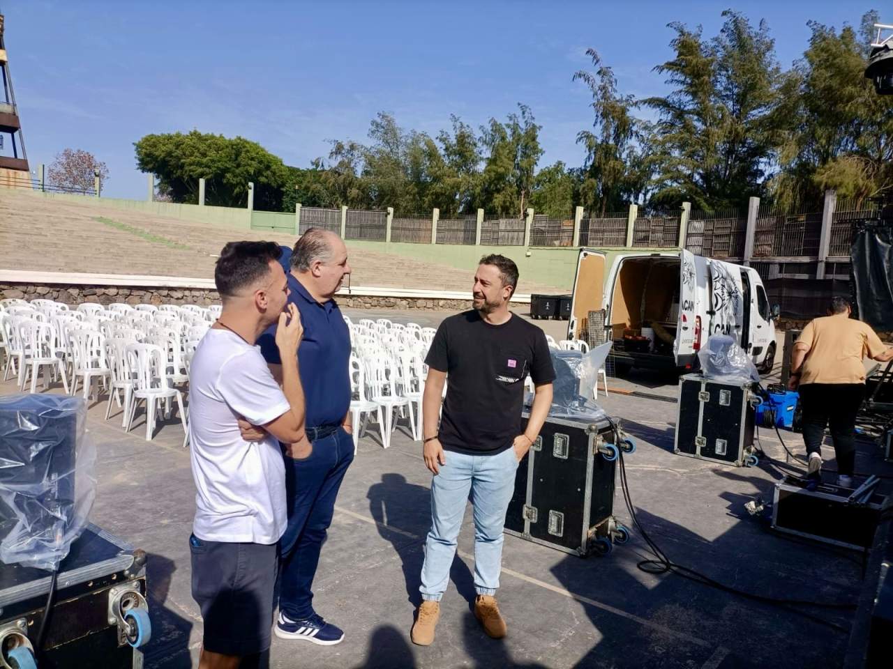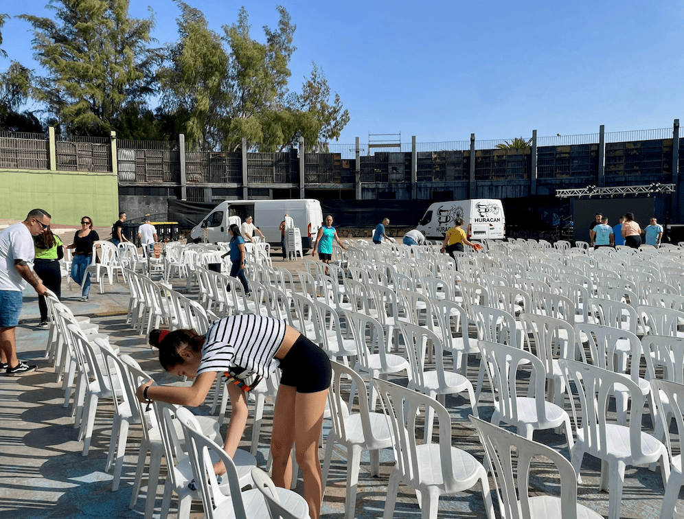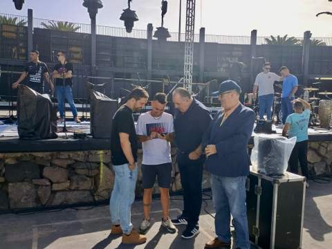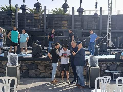Todo listo en el auditorio José Vélez del parque urbano de San Juan para el evento de presentación, este sábado a partir de las 20.30 horas, de Los Nietos de SaryManchez. La murga teldense remataba en la mañana de este sábado los últimos detalles para el espectáculo de esta noche.