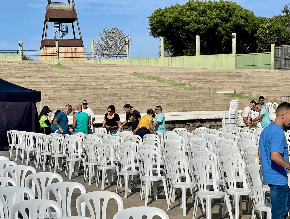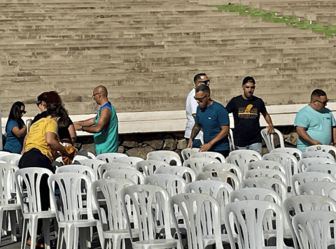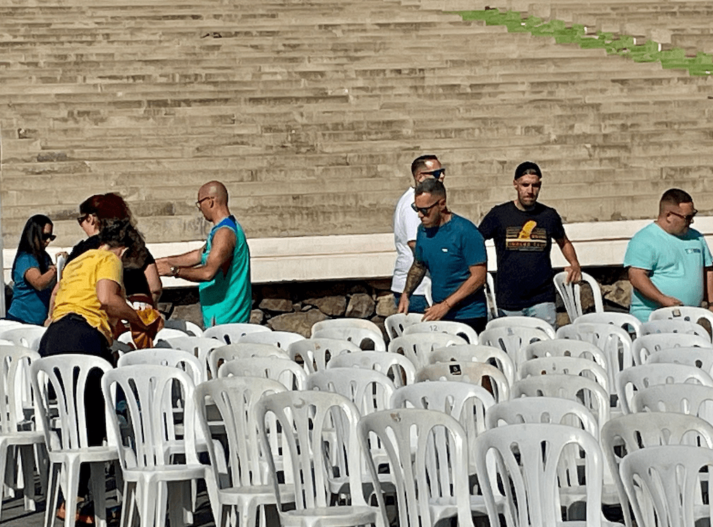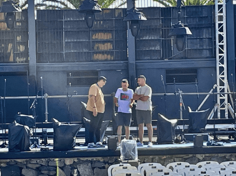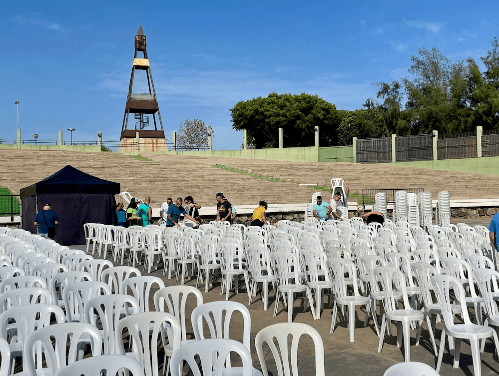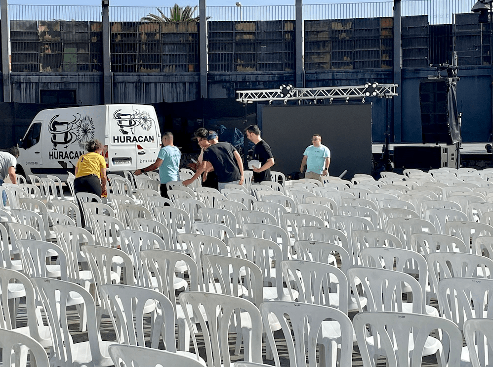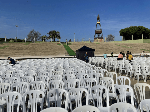 Todo listo en el auditorio José Vélez del parque urbano de San Juan para el evento de presentación, este sábado a partir de las 20.30 horas, de Los Nietos de SaryManchez. La murga teldense remataba en la mañana de este sábado los últimos detalles para el espectáculo de esta noche.