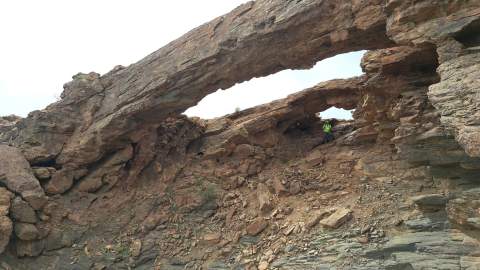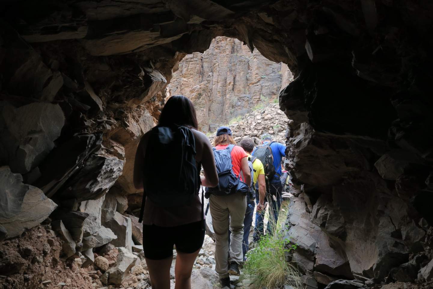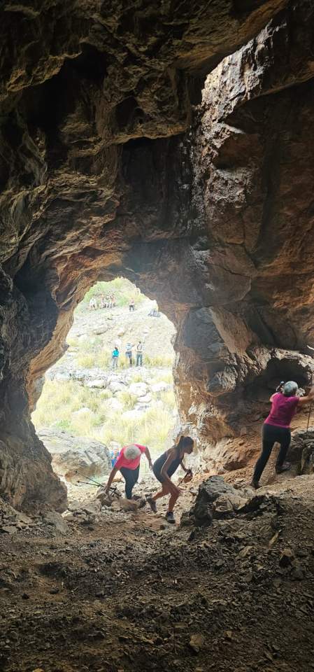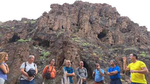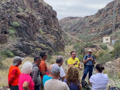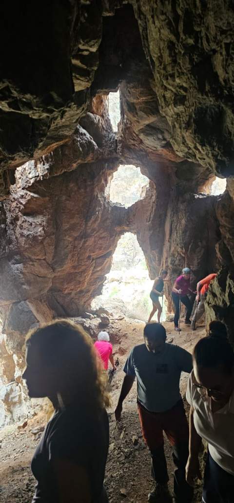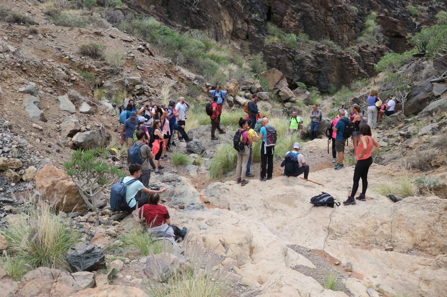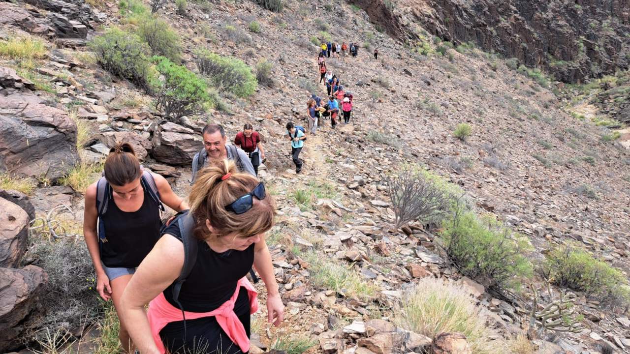 El tiempo nublado favoreció la excursión que culminó con 8,7 kilómetros e recorrido y más de 5 horas de duración. Gracias a las aportaciones del arqueólogo Aben Galindo y los monitores de Turcón, el itinerario comenzó en el Barranco Hondo, para visitar la Cueva Gótica, para posteriormente adentrarse en el túnel del barranco de La Monta y finalizar en el Arco del Coronadero a 316 metros de altitud.