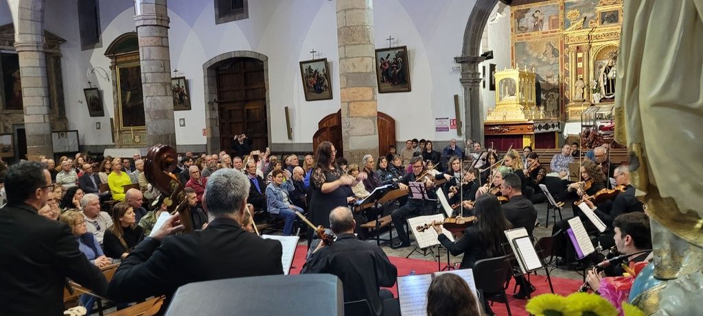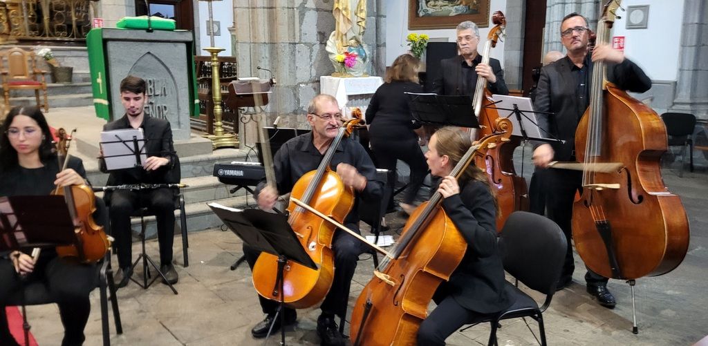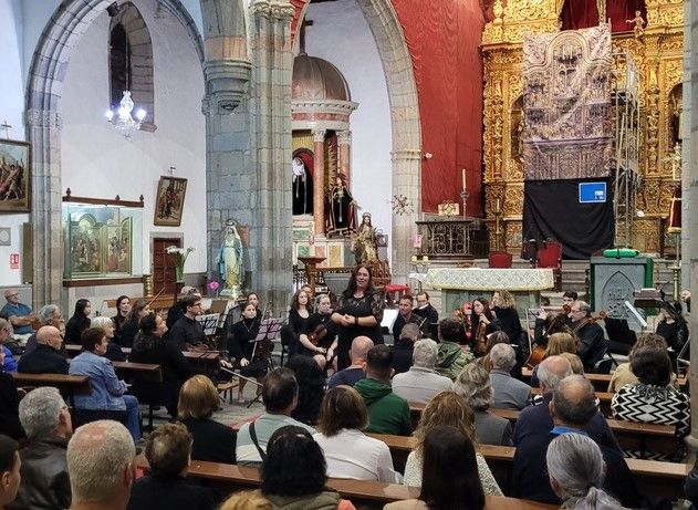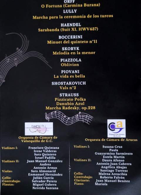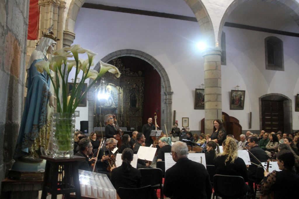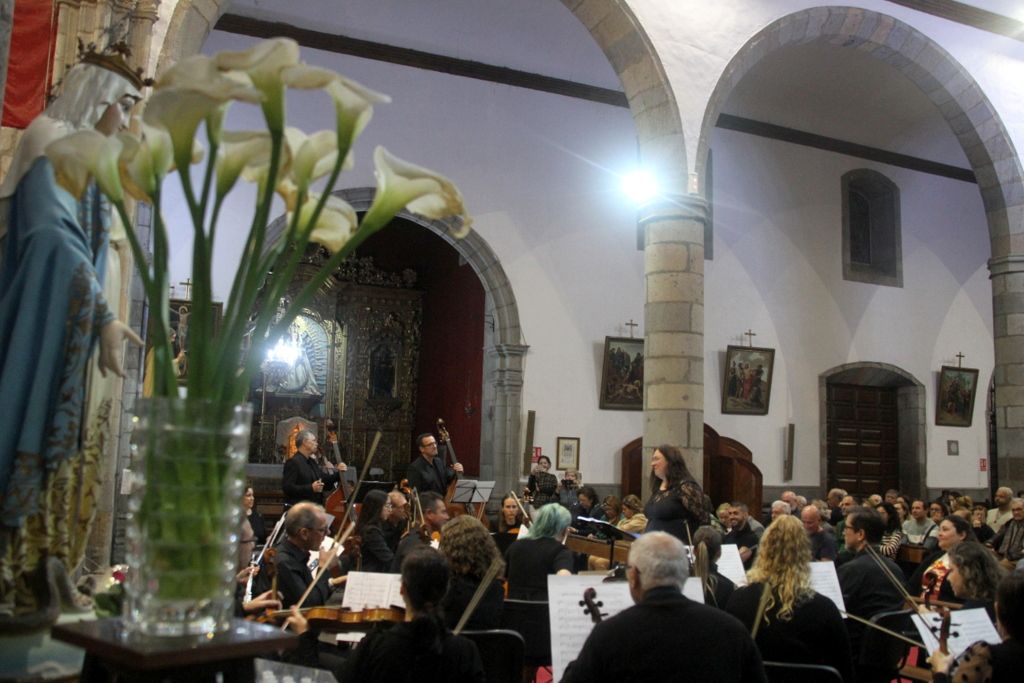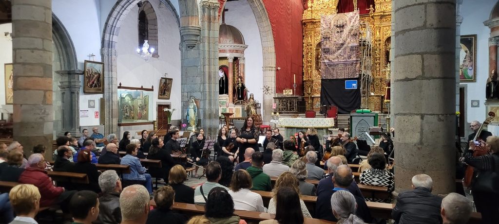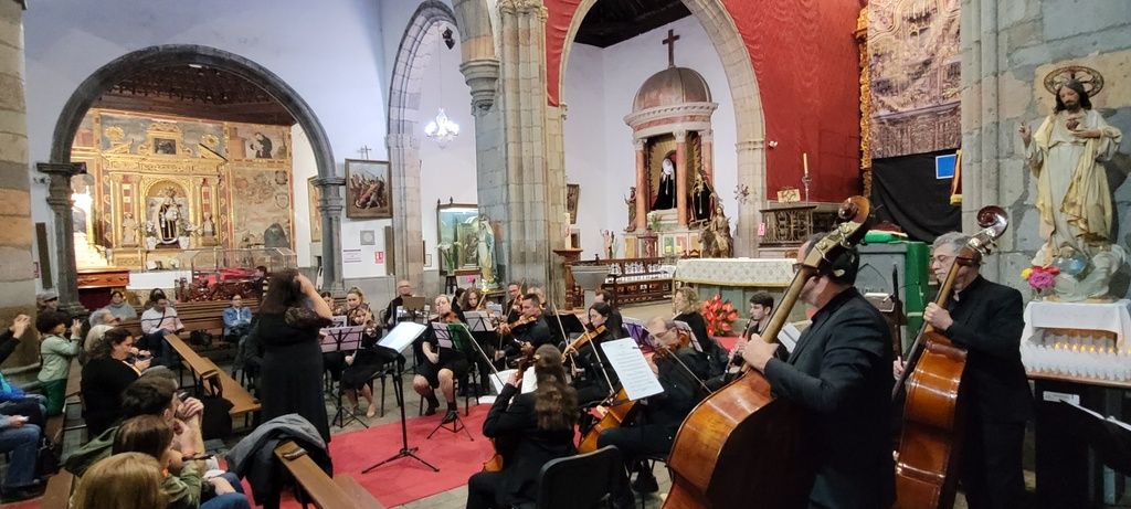Bajo el crucero y naves de este templo santuario se elevaron las extraordinarias interpretaciones musicales de dos extraordinarias agrupaciones orquestales, en las que una vez más tuvimos la oportunidad y gratísima experiencia de reencontrarnos con la Orquesta de Cámara de Valsequillo de Gran Canaria y la Orquesta de Cámara de Arucas, que bajo la dirección de Milagrosa Jiménez, presentando el concierto y cada composición en su transcurso, contenido del programa que se entregó al público a la entrada del recinto, y al co-director Airam Déniz.