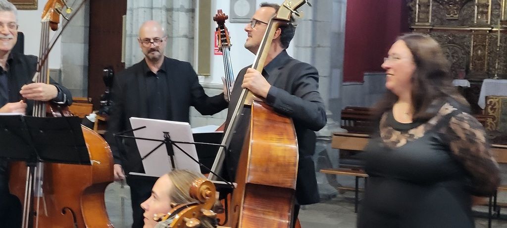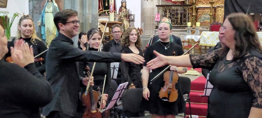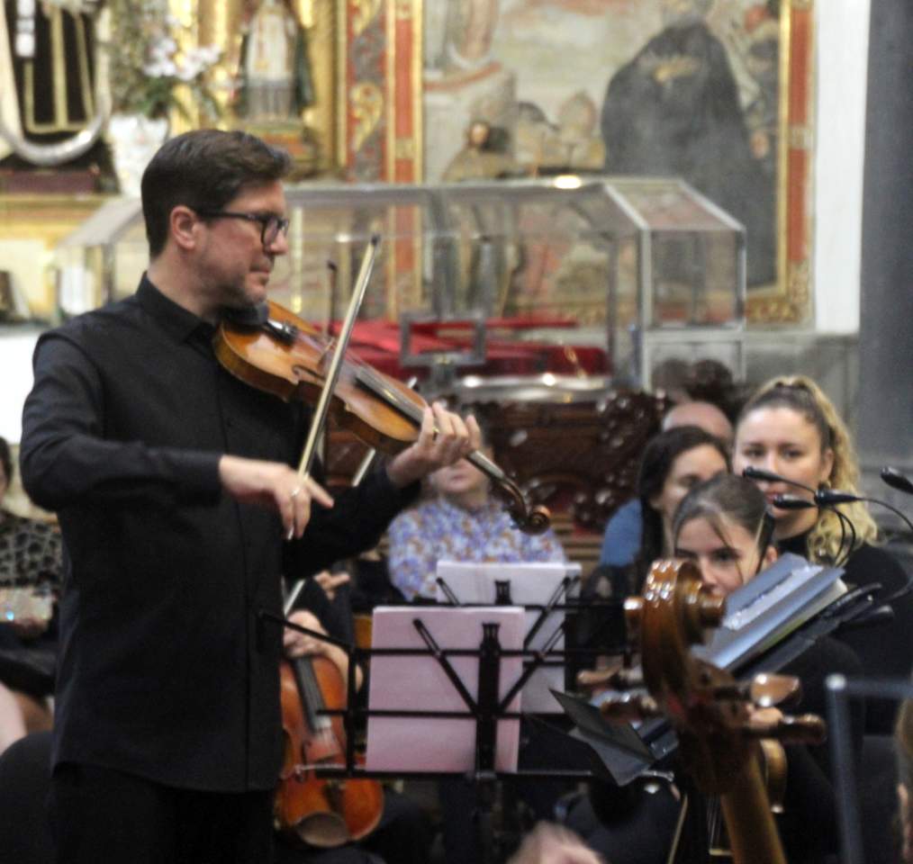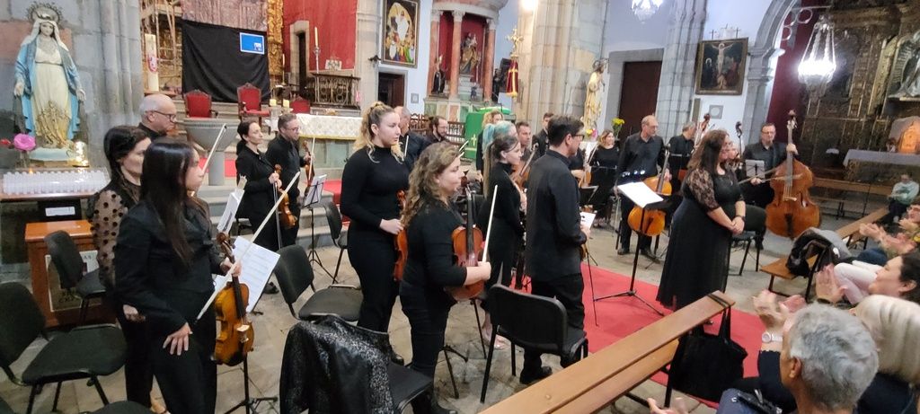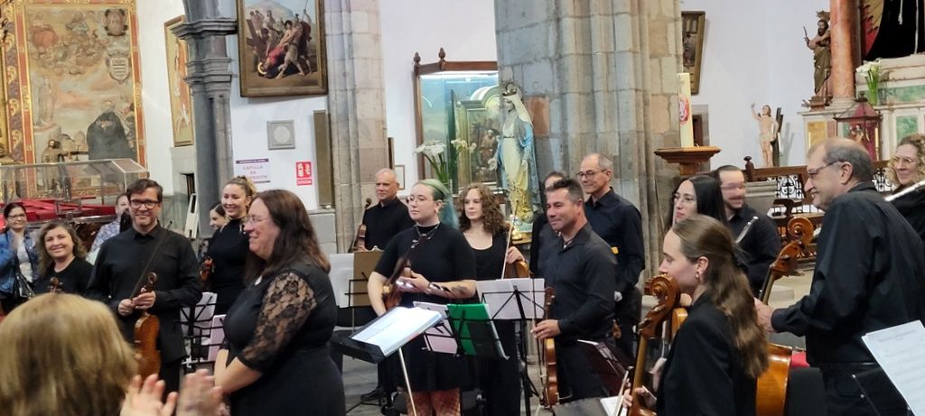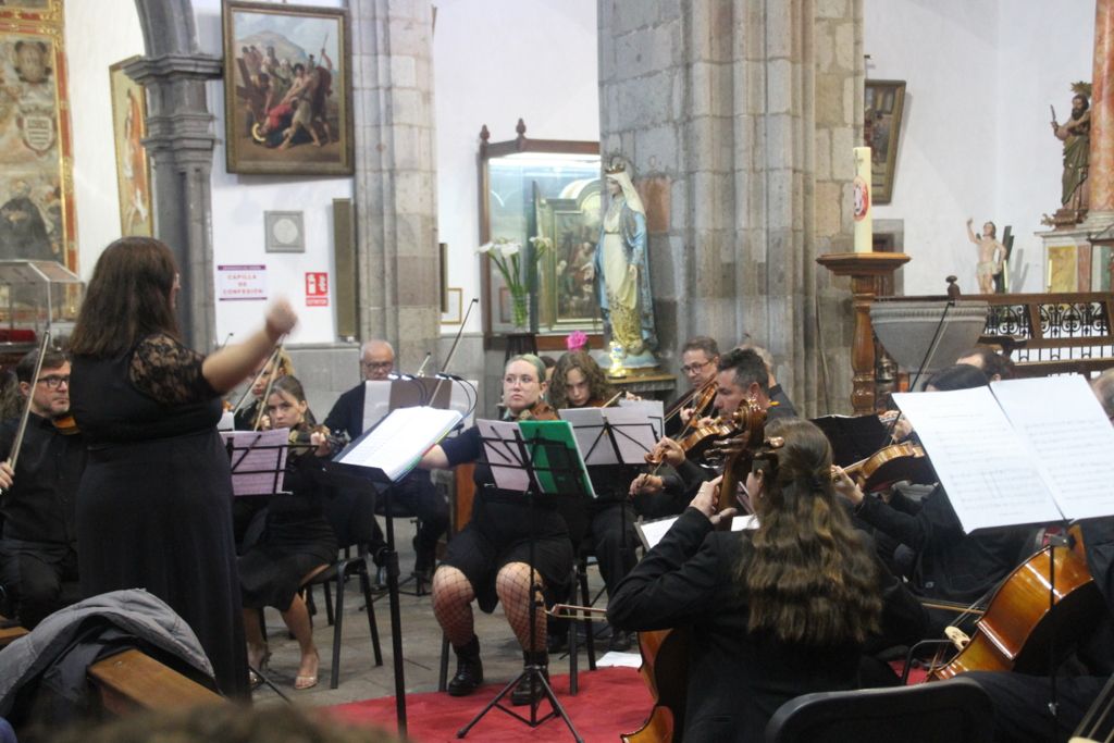 Bajo el crucero y naves de este templo santuario se elevaron las extraordinarias interpretaciones musicales de dos extraordinarias agrupaciones orquestales, en las que una vez más tuvimos la oportunidad y gratísima experiencia de reencontrarnos con la Orquesta de Cámara de Valsequillo de Gran Canaria y la Orquesta de Cámara de Arucas, que bajo la dirección de Milagrosa Jiménez, presentando el concierto y cada composición en su transcurso, contenido del programa que se entregó al público a la entrada del recinto, y al co-director Airam Déniz.