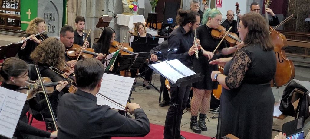 Destacar la actuación instrumental de todos y cada uno de los componentes de las dos orquestas y como solistas en la versión Oblivion, de Daura Afonso al violín, y Miguel Gubern en la flauta. Al piano, Mariola, en La vida es bella, que motivaron y emocionaron por las calidades musicales y bellos registros instrumentales, perfecta audición en este templo ante el Retablo gótico flamenco que, aunque se encuentra actualmente en período de restauración, la imagen del Santo Cristo de Telde preside este altar mayor.