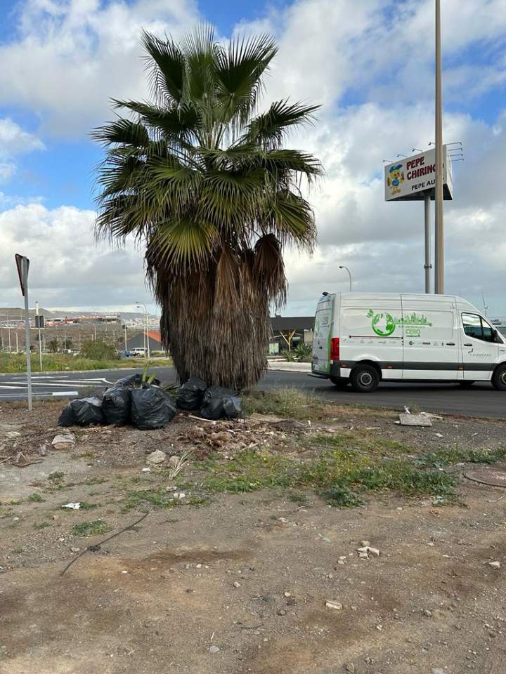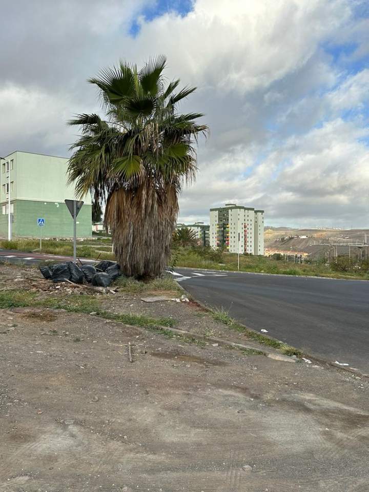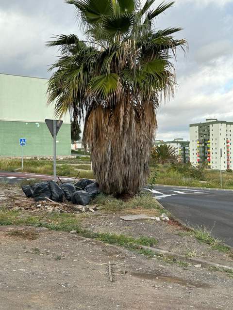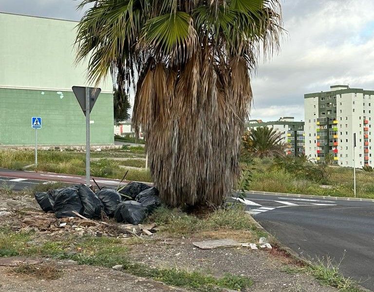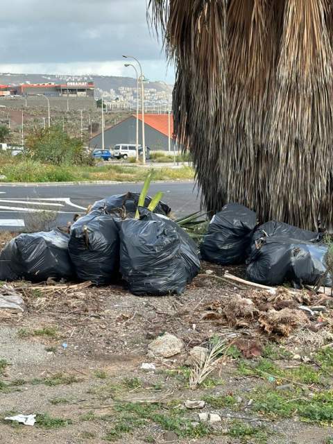 Vecinos de Jinámar denuncian que en la zona cercana al Lidl del barrio llevan meses ‘olvidados’ restos de poda en bolsas y que nadie se encarga de retirarlos.