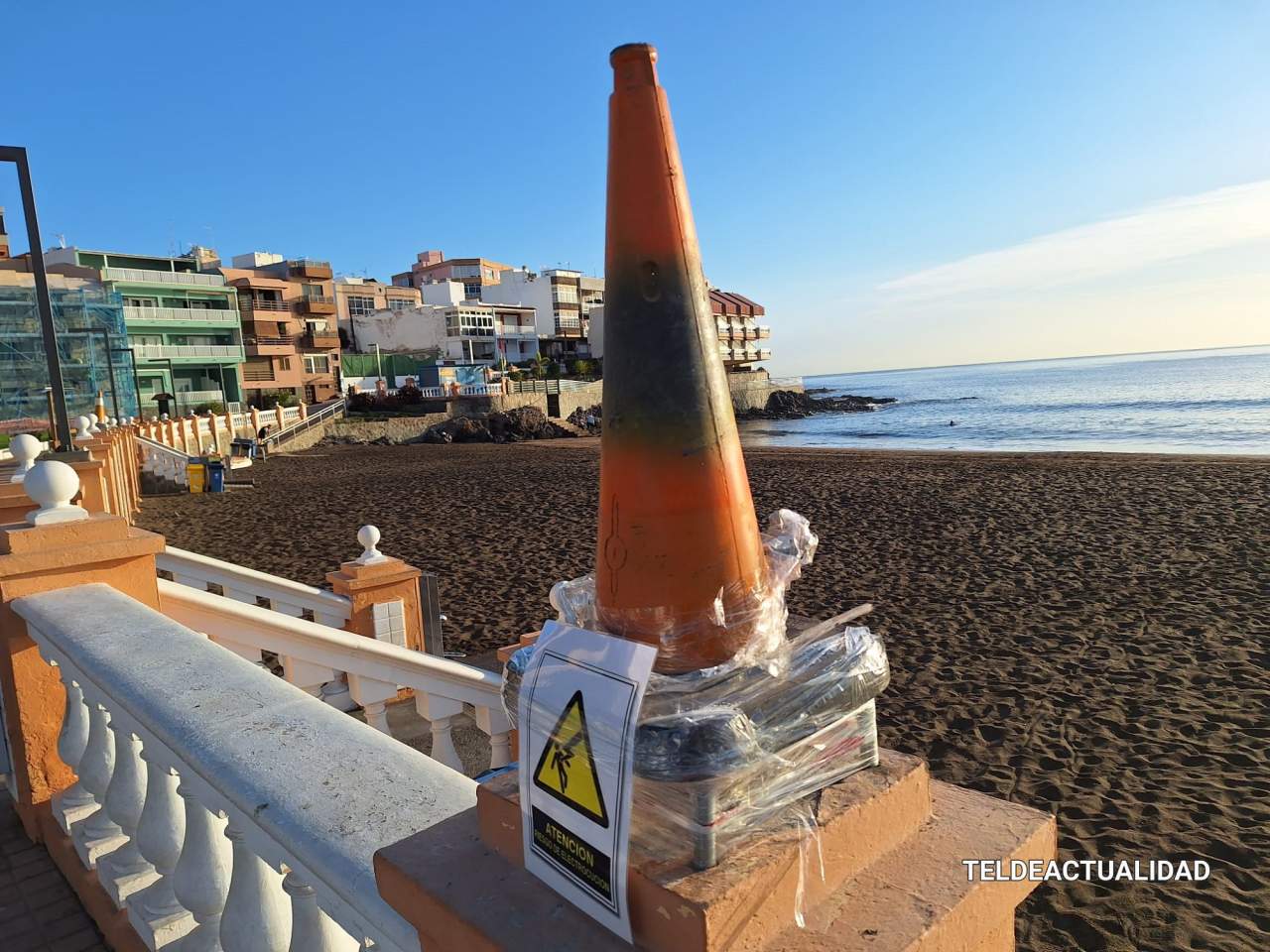 La empresa que ejecuta los trabajos de renovación de las luminarias en el paseo costero, entre La Garita y Salinetas, ha colocado en las últimas horas conos de protección sobre los cables sueltos en los anclajes, con carteles avisando del peligro de electrocución. Y lo ha hecho tras la denuncia vecinal realizada a través de TELDEACTUALIDAD, en la que se advertía del peligro debido a las nulas medidas de seguridad que realizaba la entidad durante los trabajos.