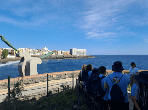 El alumnado trabajador del PFAE Promociónate de Telde, gestionado por la Concejalía de Desarrollo Local -que lidera Nayra Navarro- ha llevado a cabo una acción formativa de sinergia con los compañeros y compañeras del PFAE Infotur LPGC, pertenecientes al IMEF de la capital grancanaria. Durante la actividad, los alumnos y alumnas recorrieron parte de la costa teldense -desde la Playa de La Garita hasta la Playa de Melenara-, guiados por los estudiantes naturales de la ciudad, a través de una ruta en inglés diseñada y ejecutada por ellos mismos. En el recorrido, resaltaron y dieron a conocer puntos singulares como el Monumento a las Nadadoras, El Bufadero -lugar muy visitado por turismo nacional y extranjero-, la zona de residencia de la reconocida escritora Sanmao, Taliarte y el entramado de la cala de Melenara.