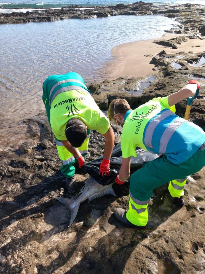 Poco tiempo después, el animal fue retirado por personal de limpieza de Telde.