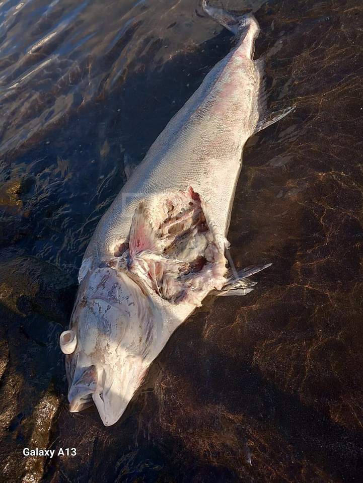 Esta mañana, un pez de más de un metro de longitud fue hallado sin vida en la orilla de la playa de Salinetas, cerca de los riscos situado en su extremo sur.